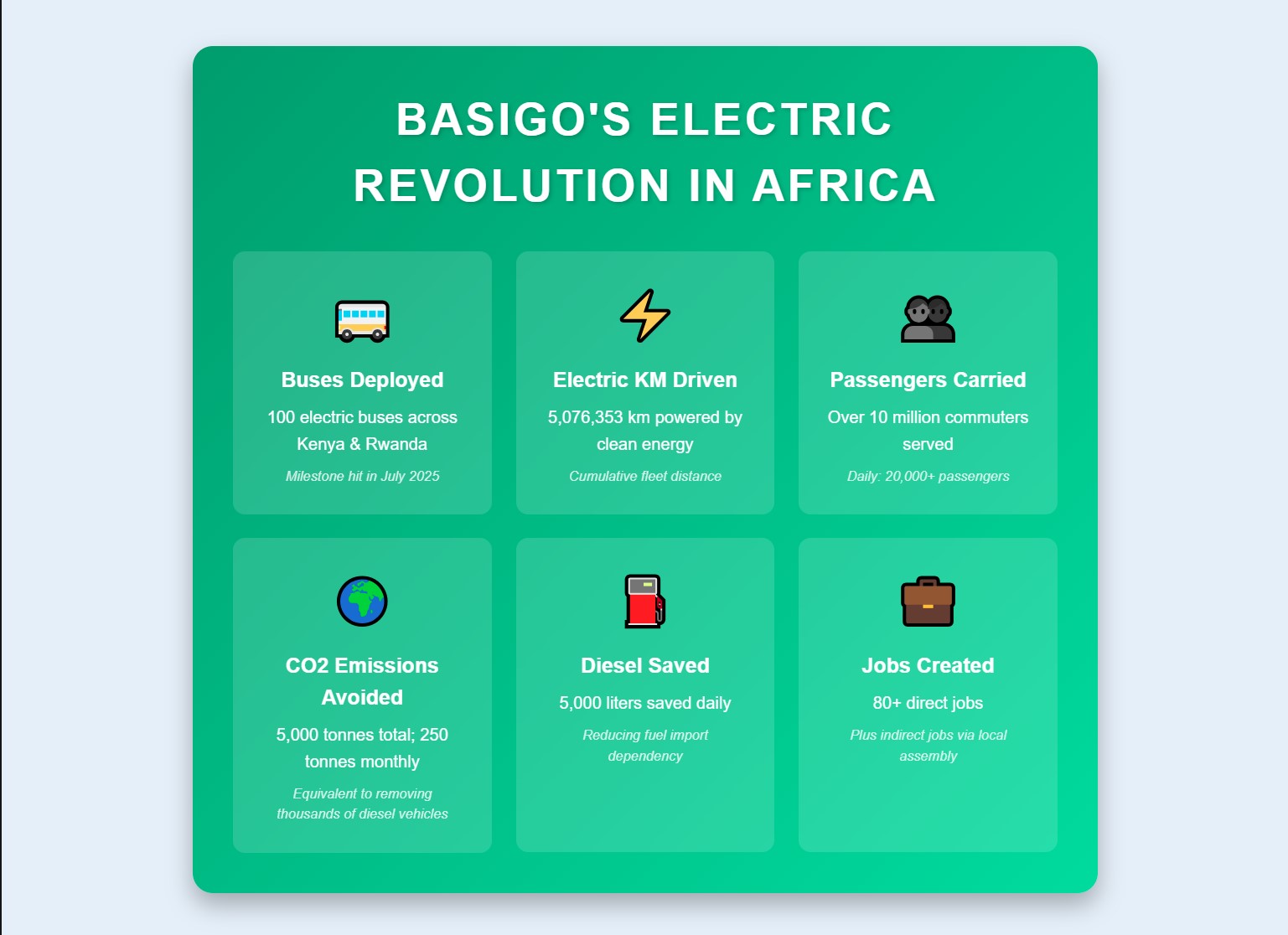 Here’s where the magic happens: real, measurable change. As of August 2025, BasiGo has deployed 100 electric buses across Kenya and Rwanda, a milestone celebrated just days ago.